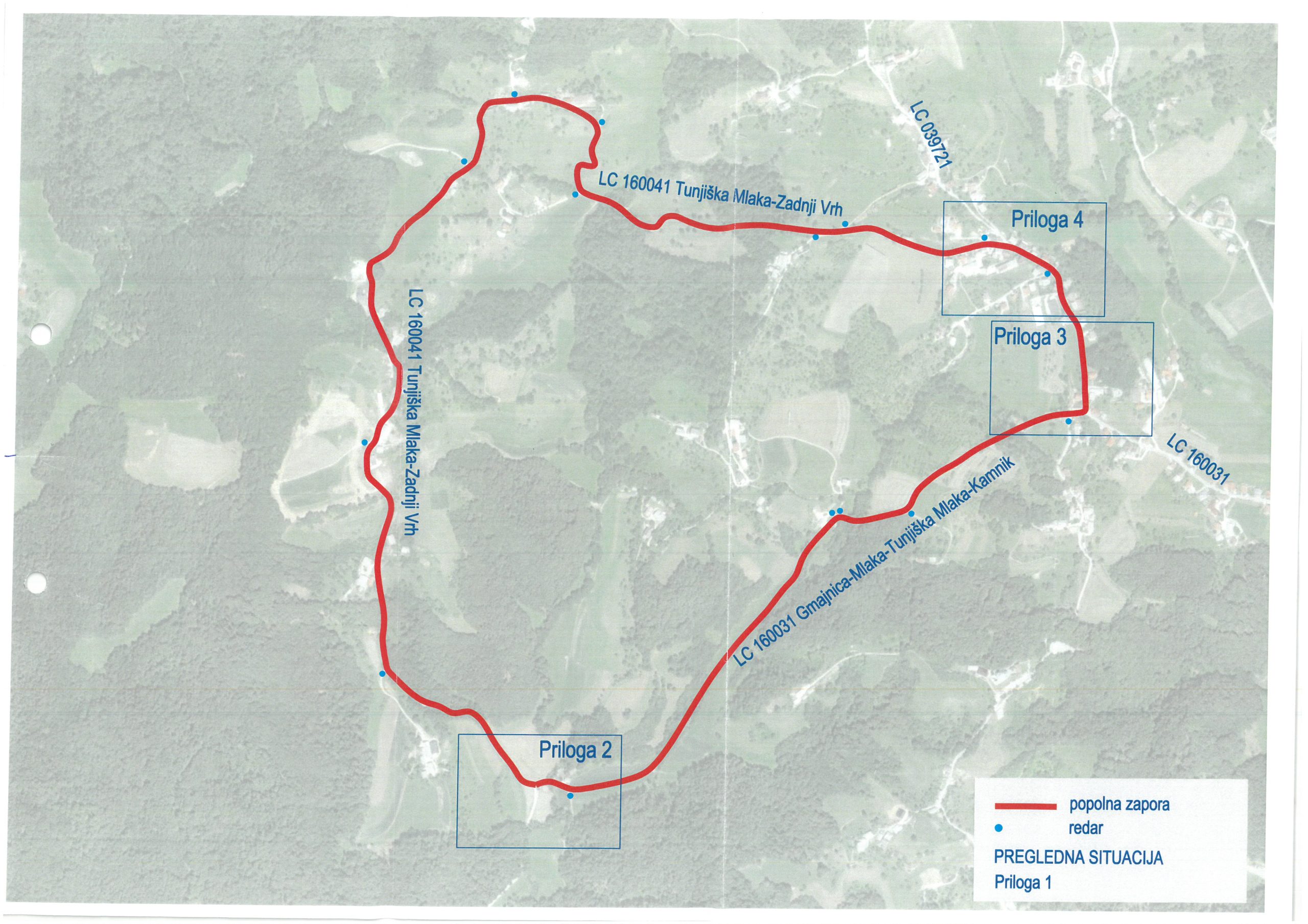 Obveščamo vas, da bo na območju TUNJIC zaradi kolesarske dirke: 5. Pokal Calcit Kamnika in VN Generali Zame v SOBOTO, 11. 4. 2025 v intervalih do 60 minut od 9:15 do 15:00 ure. Občasna popolna zapora lokalne ceste LC 039721 Cerkljanska Dobrava – Vrhovlje – Tunjiška Mlaka (pred križiščem z LC 160041) in občasna popolna – mobilna zapora LC 160041 – Tunjiška Mlaka – Zadnji vrh – Tunjice in LC 160031 Kamnik (Tunjiška cesta) – Tunjiška Mlaka – Mlaka pri Komendi – Gmajnica. Zapora se bo urejala s cestno prometno signalizacijo, policijo in rediteljsko službo.